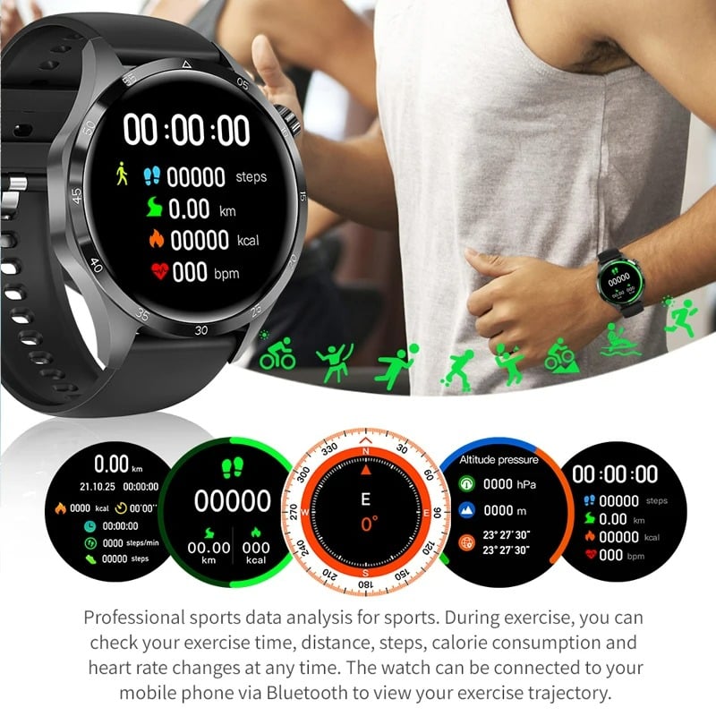 (ساعة رياضية ذكية برو GT4 للنساء والرجال وللمكالمات وبشاشة AMOLED عالية الدقة ومقاومة للماء. وقياس نسبة الأكسجين 2023